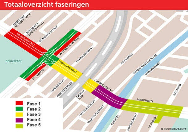 De werkzaamheden zijn verdeeld in vijf fasen om de buurt zo bereikbaar mogelijk te houden. Zo wordt telkens een deel afgerond en kan de straat daarna weer worden gebruikt.